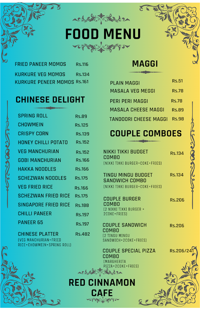 Red Cinnamon Cafe specializes in mouthwatering Indian and Chinese cuisines, perfect for casual hangouts or family dinners. The menu features delightful offerings—the Masala Veg Maggi, a comforting bowl of noodles bursting with flavors, is perfectly balanced and a crowd favorite at just ₹0.78. If you’re in the mood for something with a kick, the Peri Peri Maggi at the same price will definitely satisfy your cravings.